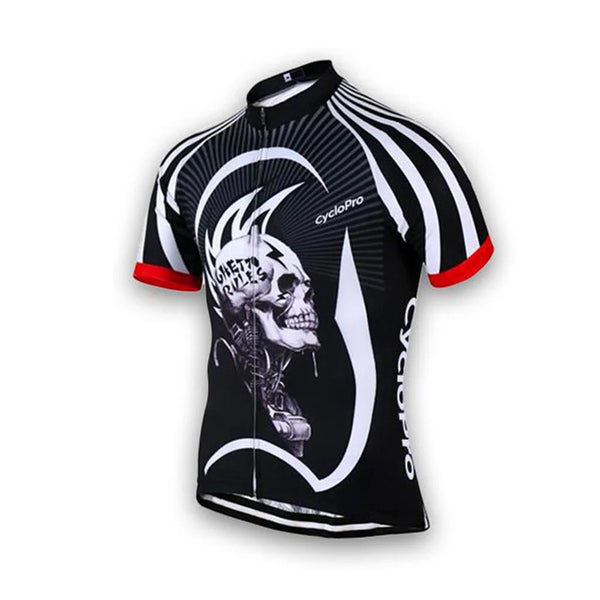 Adoptieren Sie unser Schädel -Reiter -Radsporttrikot, um Ihre Fahrradausflüge bei sonnigem Wetter zu nutzen.